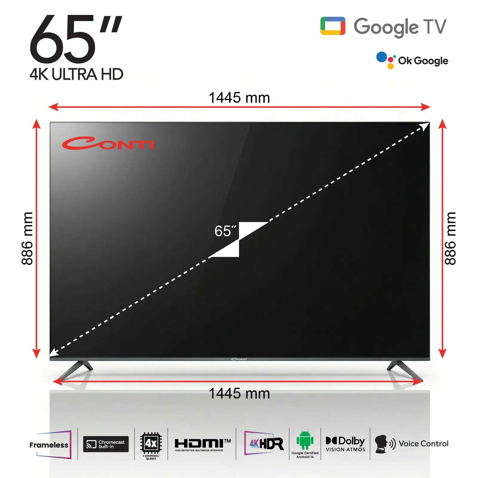 Conti CT65OG300U 65″ 4K QLED UHD Frameless Google Tv