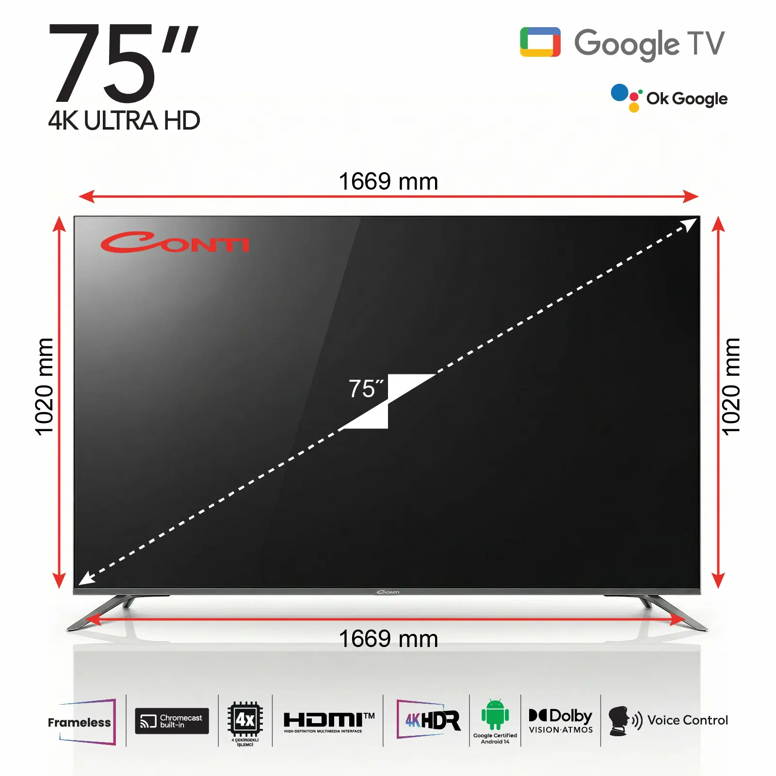Conti CT75GT300U 75″ 4K UHD Frameless Google Tv